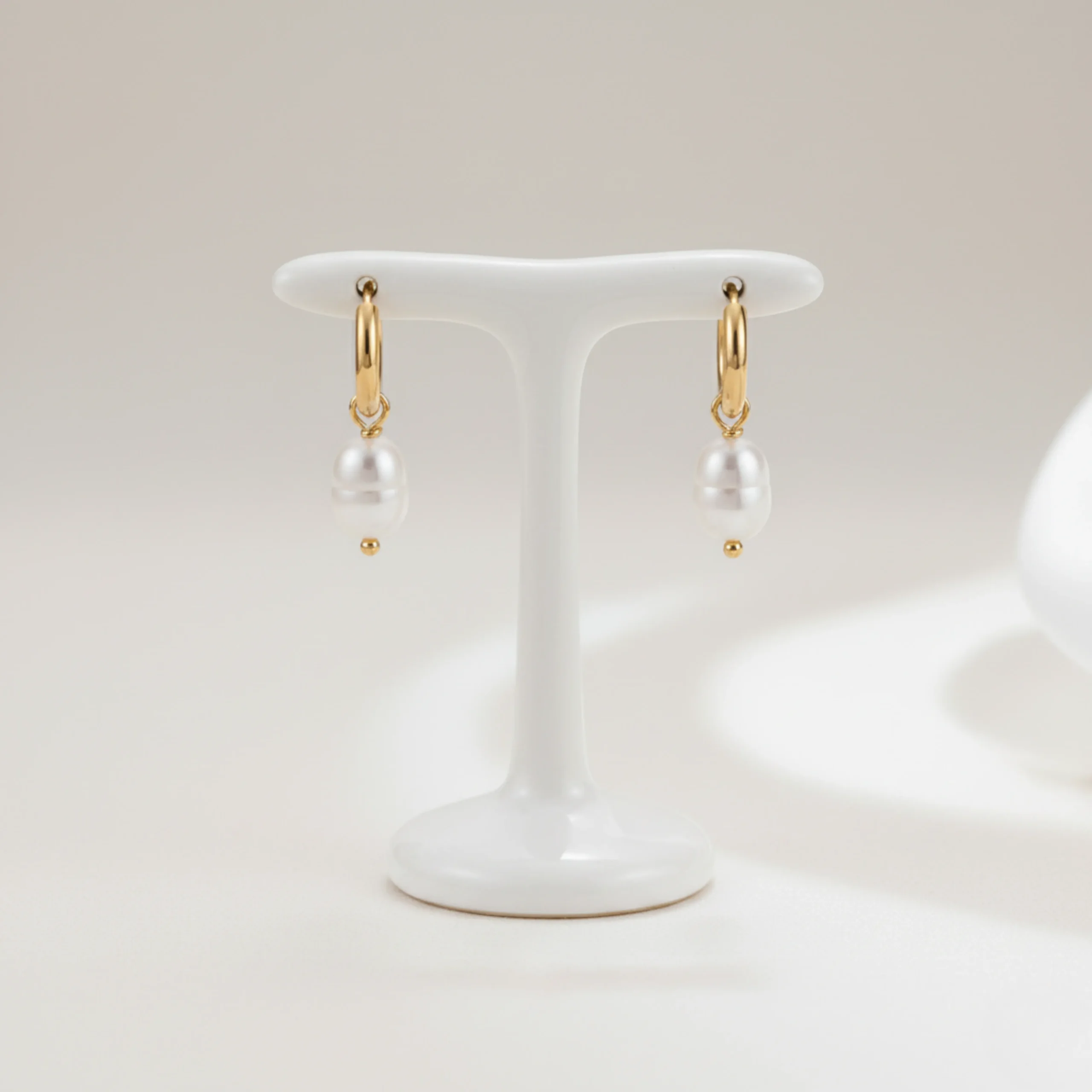 עיצוב: עגיל חישוק עגלגל בעל מראה יוקרתי בשילוב תליון תלוי דמוי פנינה.